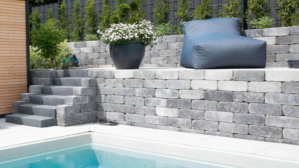 Abbildung oben zeigt Cityantik-Mauer in Grau-Anthrazit nuanciert