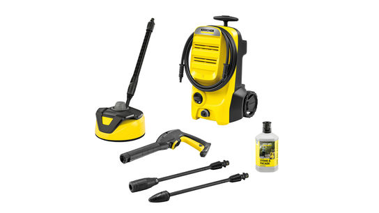 K 4 Classic Home, Fördermenge max. 420 l/h, Druck 20 – 130 bar, Flächenleistung 30 m²/h, Quick Connect, Teleskopgriff, 6-m-HD-Schlauch, inkl. Hochdruckpistole, Vario Power Jet, Dreckfräser, Flächenreiniger T 5, 1 Liter Stein- und Fassadenreiniger
