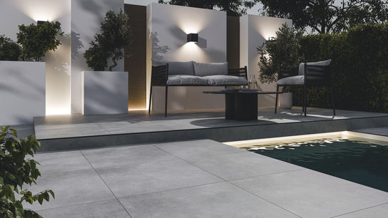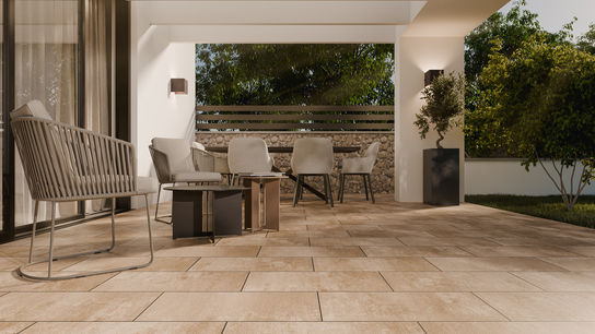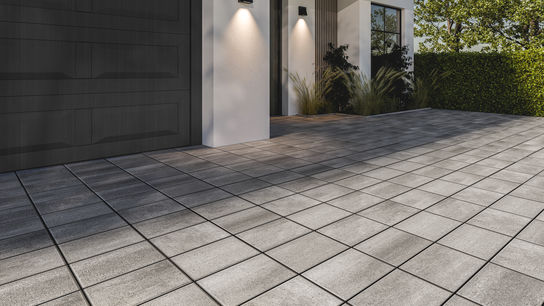 Mit der Serie Pavimentum lassen sich Terrassen und Auffahrten in der gleichen Farbe und Oberfläche harmonisch gestalten.